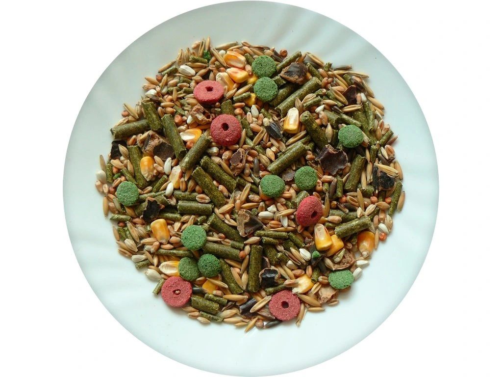 Složení:Oves celý, ječmen, pšenice, kukuřice, úsušky pícmin, extrudované obiloviny