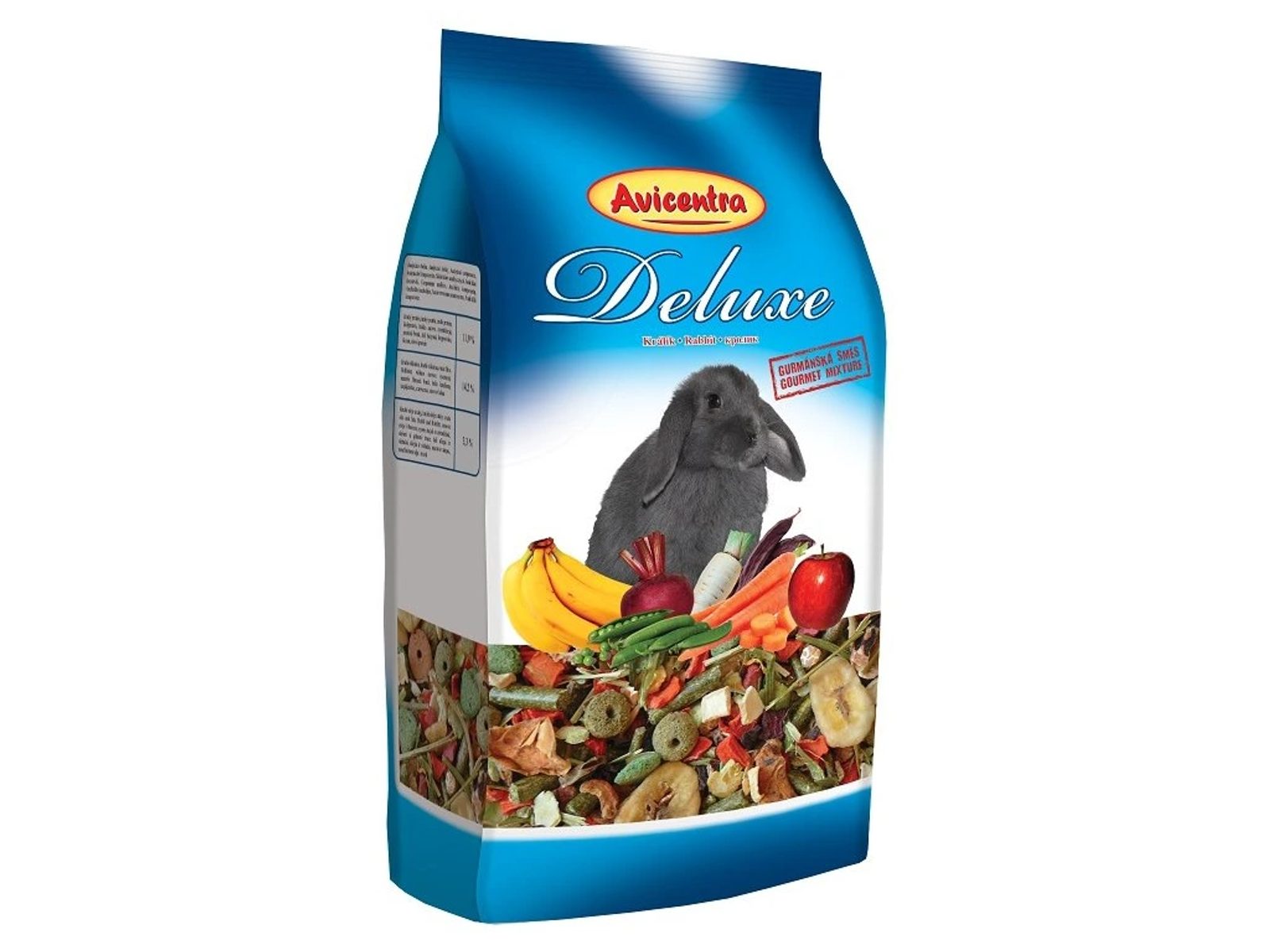 Výběrová krmná směs pro králíky se spoustou sušené zeleniny a kvalitní vojtěšky.