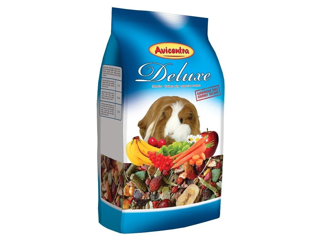 Výběrová krmná směs pro morčata se spoustou zeleniny a ovoce, bohatá na vitamín C.Složení:Kukuřice žlutá, kukuřice červená, oves celý, úsušky pícnin, peluška, hrách, svatojánský chléb, banánové chipsy, podzemnice loupaná, sušená mrkev, hrachové vločky, kukuřičné vločky, šípky, extrudované obiloviny