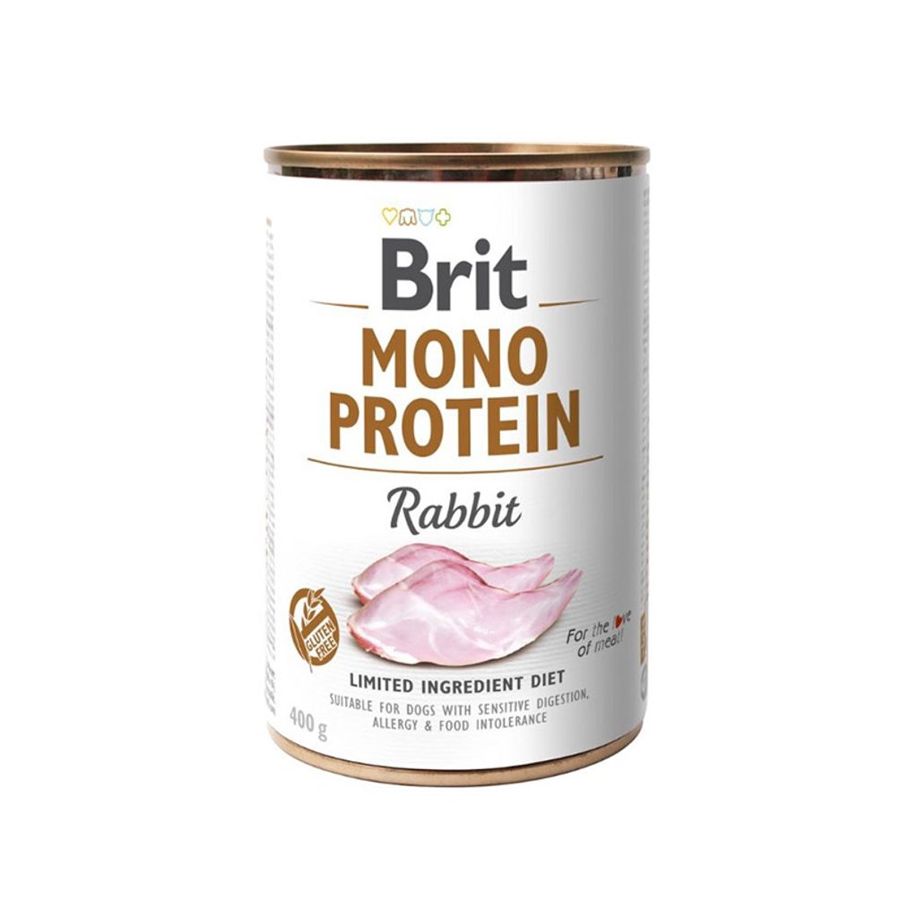 100% ČISTÝ KRÁLIČÍ PROTEIN Brit Mono Protein nabízí kompletní a vyváženou výživu. Receptura s obsahem jednoho proteinu je vhodná ke snížení rizika alergií a potravinové intolerance. Kompletní krmivo pro psy.