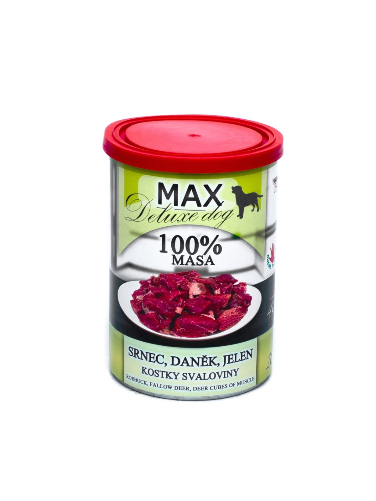 Konzervy MAX deluxe jsou vyrobené ze 100% čistého masa ze srnce, daňka a jelena ve vysoké kvalitě.