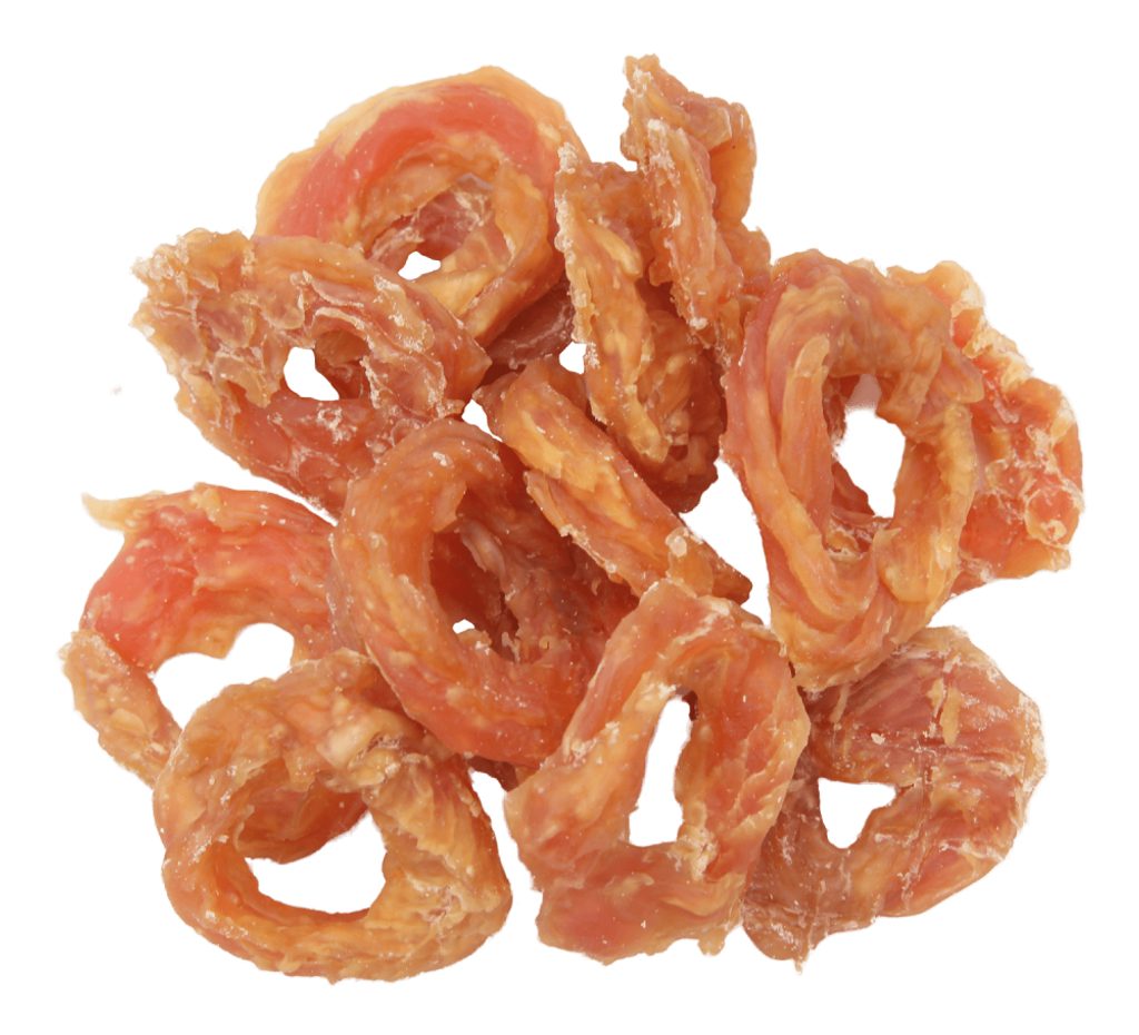 Dopřejte svému psovi čistou, masitou chuť kuřecího masa v zábavné formě kroužků! Tyto kroužky s 93 % kuřecího masa jsou skvělým doplňkem stravy a perfektní odměnou při výcviku nebo hře. Mají bezlepkové složení a neobsahují přidaný cukr.